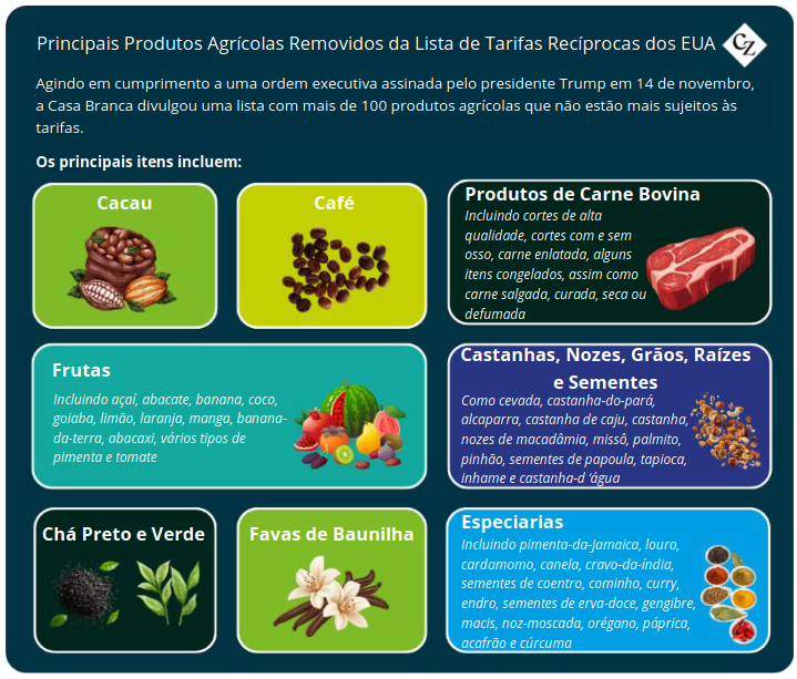 A suspensão, aplicada pelo governo Trump em meados de novembro, das tarifas sobre diversos alimentos, ingredientes e insumos agrícolas, aparentemente não incluiu a tarifa de 50% sobre as importações de açúcar do Brasil.