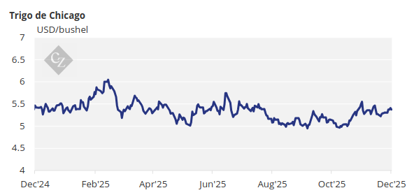 O milho de Chicago permanece estável. O mercado consolidou os ganhos da semana passada devido a temores de interrupções no fornecimento da Ucrânia, com a expectativa de que o relatório WASDE de dezembro reduza a produtividade do milho nos EUA. Apesar da volatilidade a curto prazo, a oferta permanece ampla tanto em relação ao milho quanto ao trigo, mantendo o mercado coberto.