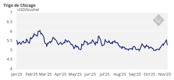 A China suspendeu as tarifas e comprou trigo dos EUA. Os mercados aguardam o relatório WASDE em 14 de novembro, com expectativas de uma menor produtividade do milho. Quaisquer ganhos de preço podem ser de curta duração, a menos que a redução na produtividade supere as previsões, já que o potencial de alta permanece limitado.