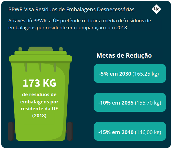 O Regulamento de Embalagens e Resíduos de Embalagens – PPWR (em inglês, Packaging and Packaging Waste Regulation) proposto pela Comissão Europeia apoia esta ideia ao estabelecer metas para a redução de embalagens desnecessárias, incentivando as empresas a inovar e, ao mesmo tempo, a cumprir os requisitos de segurança e de marca. Em resumo: utilizar menos recursos, desde o início.