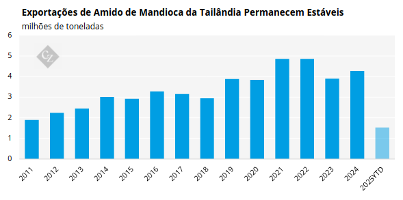 O mercado de amido de mandioca da Tailândia está mostrando alguns sinais de estabilização, embora os volumes de exportação ainda não tenham mostrado uma tendência ascendente clara.