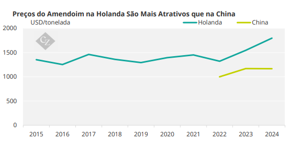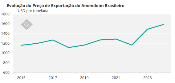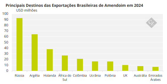 Na Europa, o amendoim é amplamente utilizado na alimentação humana, seja na produção de doces ou no consumo direto após ser torrado. A Holanda, um dos principais parceiros comerciais do Brasil, pagou cerca de USD 1.800 por tonelada pelo amendoim brasileiro sem casca em 2024, segundo a Comex, enquanto os preços neste ano estão girando ao redor de USD 1.500 por tonelada. Já as vendas para a Rússia, principal destino das exportações brasileiras de amendoim, vêm oscilando em torno de USD1.300 por tonelada.