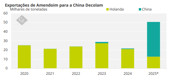 Os primeiros resultados começaram a aparecer neste ano. Entre janeiro e setembro, as exportações de amendoim para China geraram cerca de USD 43,8 milhões em receita — passando as vendas para a Holanda, um dos maiores compradores do amendoim brasileiro, durante todo o ano de 2024. Nesse ritmo, a China deverá passar a figurar como um dos principais destinos das exportações brasileiras.