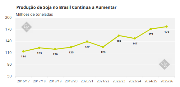 Apesar dessas movimentações de preços, a diferença entre os preços da soja brasileira e americana ainda era inferior a 1% no final de novembro, insuficiente para compensar a tarifa adicional de 10% sobre a soja americana. Um relatório do mercado chinês de oleaginosas estimou o custo de importação, após impostos, em moeda chinesa, em RMB 4.465/tonelada para a soja americana e RMB 4.002 para a soja brasileira importada em janeiro de 2026.