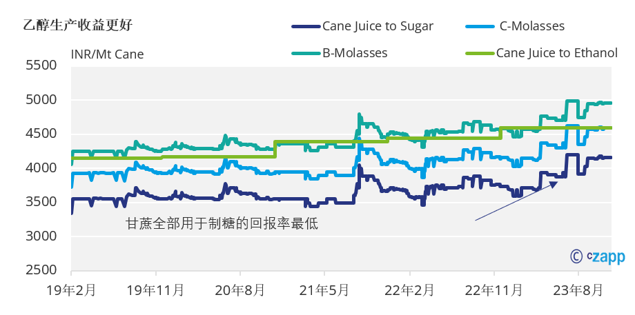 近年来,政府按原料设定乙醇价格,以确保工厂有正确的价格信号来继续投资制醇能力。我们会在新的印度糖醇比价月度更新中跟踪这些价格和相对回报。