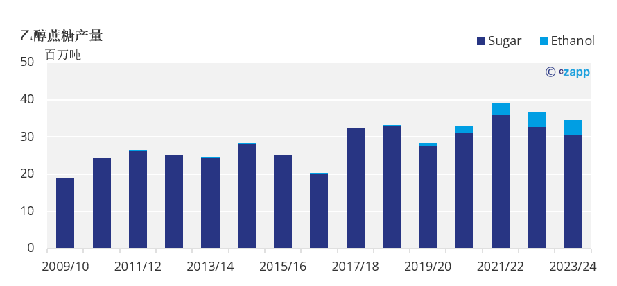 现在的主要问题是原料的可用性——生产乙醇所需的甘蔗、玉米和大米。所有这些作物都受到厄尔尼诺现象和季风降雨不足的严重影响。早在7月,印度就禁止出口大米,而我们预计甘蔗产量将回落到4亿吨以下,比上年下降11%。